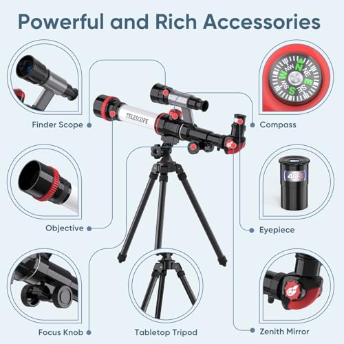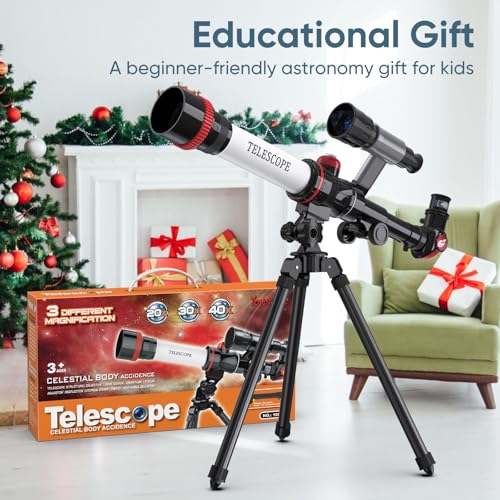 Inspire young astronomers with the ToyerBee Kids Telescope. Features 3 eyepieces, a compass, and portable design for STEM learning.
