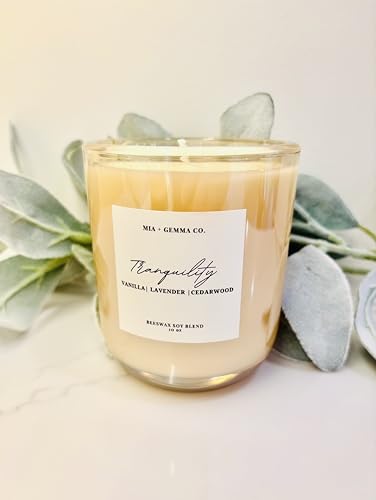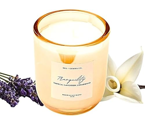 Indulge in the soothing aroma of the Tranquility Beeswax Soy Blend Candle. This 10oz handcrafted candle combines vanilla, lavender, and cedarwood essential oils for a serene ambiance. Made with a non-toxic, cruelty-free blend of beeswax and soy, it features a cotton wick for over 65 hours of clean, long-lasting burn. Perfect for creating a calming atmosphere, gifting for holidays, or enhancing your self-care routine. Ideal for bedrooms, living rooms, or spas.