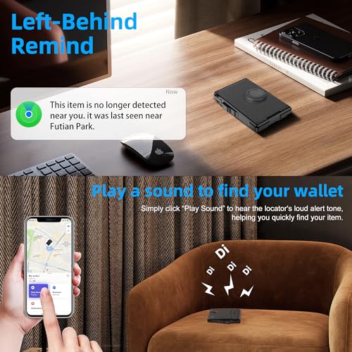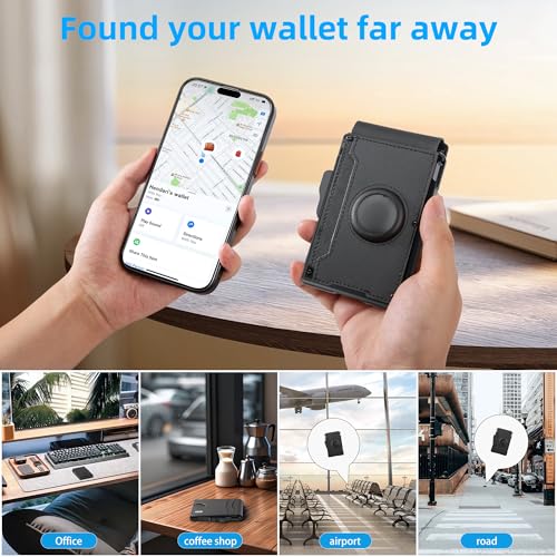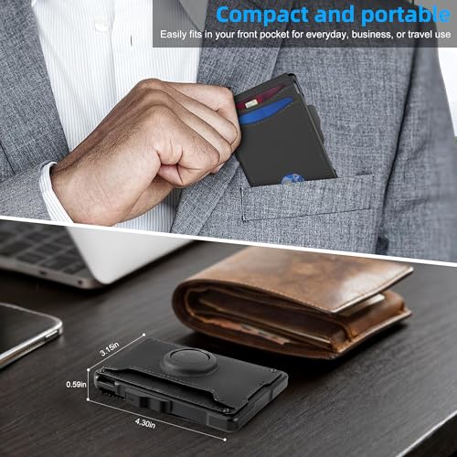 Experience the ultimate in modern wallet technology with the umoven Wallet for Men, designed specifically for AirTag integration (iOS Only). This minimalist metal wallet combines sleek aesthetics with robust functionality. It features RFID blocking to protect your sensitive card data, a convenient money clip for cash, and an ID window for quick access. The smart pop-up mechanism allows for effortless retrieval of your credit cards. Crafted with slim leather slots, this bifold wallet is the perfect blend of style, security, and smart tracking for the tech-savvy man. (AirTag not included).