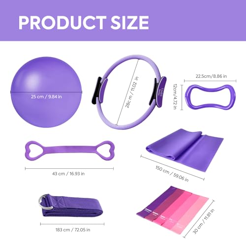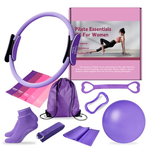 Enhance your home workout experience with the Usakiibebe Home Pilates Essentials Kit for Women in a stylish purple. This comprehensive set is ideal for beginners and seasoned practitioners alike, offering all the equipment needed for a full-body Pilates routine. It features a durable Pilates ring, a soft Pilates ball, versatile resistance bands, and essential accessories. A helpful guide is included to kickstart your fitness journey, focusing on core strength, flexibility, and overall toning. Achieve your fitness goals comfortably and effectively from your home.