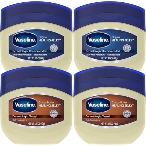 Keep your skin protected and moisturized on the go with the Vaseline Healing Jelly Travel-Size Variety 4-Pack. This essential skincare solution features two beloved formulas: Original and Cocoa Butter. Each 1.75 oz jar delivers rich moisturizing ointment, serving as a powerful skin protectant to soothe and heal cracked, dry, and chapped skin. Perfect for daily use or for managing skin concerns during travel, this pack ensures your skin stays soft, smooth, and healthy wherever you are. A must-have for every household.