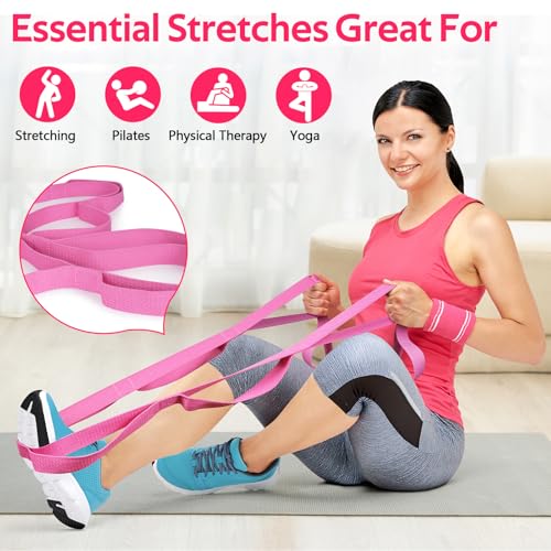 The resistance bands are great for targeting arms, legs, glutes, and shoulders, offering various stretching and strengthening exercises.