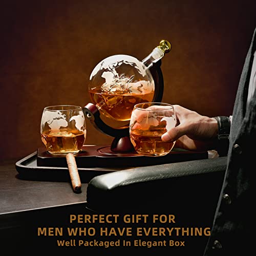 Whiskey Decanter Globe Set with Glasses – Unique Gift for Men