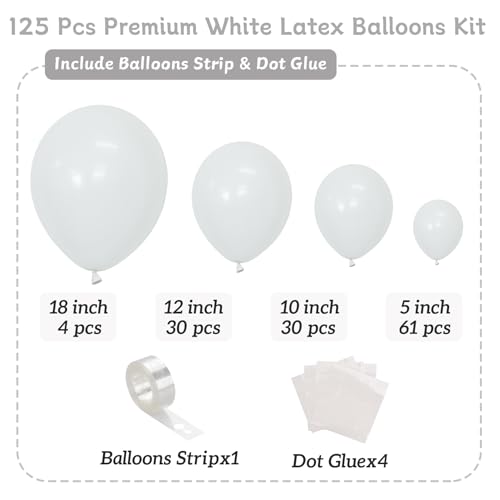 White Balloon Arch Kit – 125 Pcs Multi-Size Latex Balloons