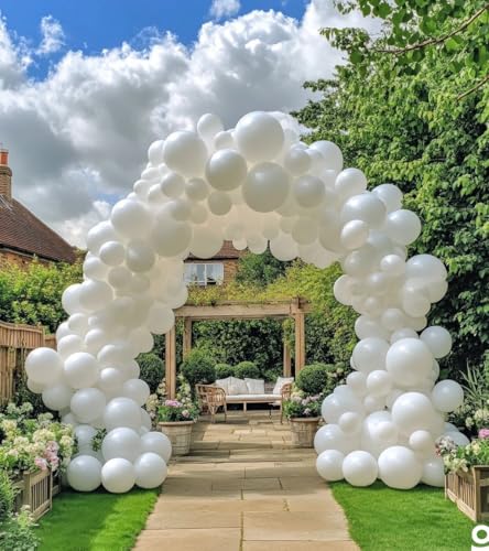 Create stunning balloon garlands with this 125-piece white latex balloon arch kit. Perfect for birthdays, baby showers, weddings & graduations.