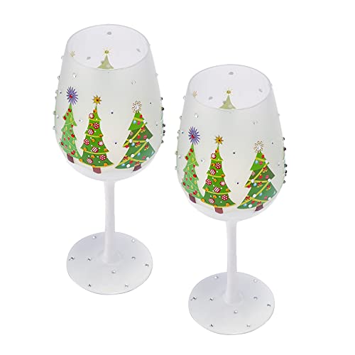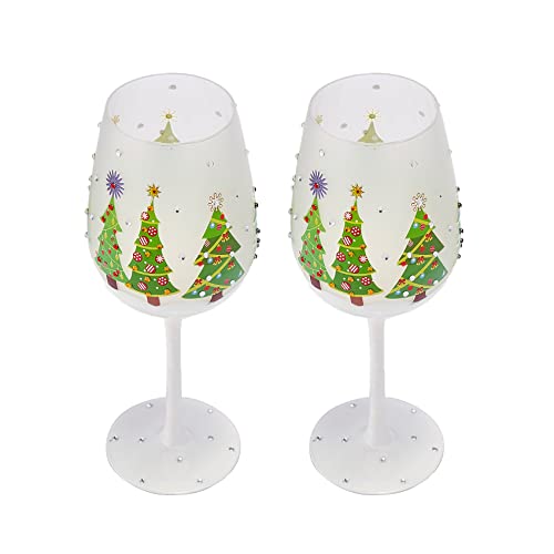 Celebrate with this set of 2 stemmed wine and water glasses featuring shining red, green, yellow, silver winter tree themes. Perfect for parties & gifts.