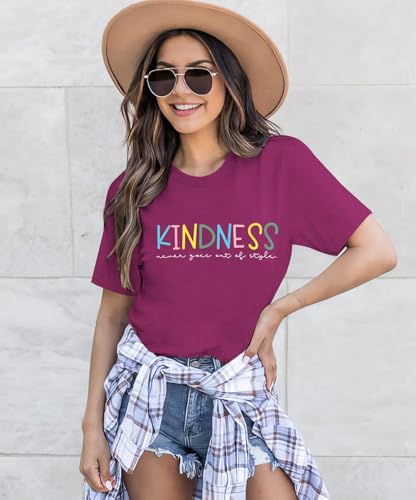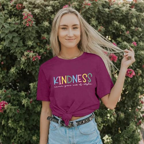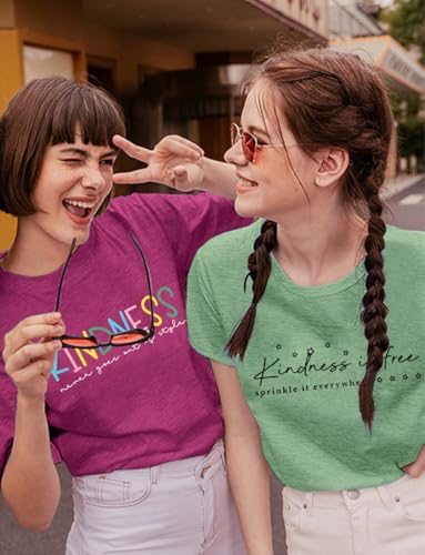 Promote a message of positivity with this delightful ‘Kindness Be Kind’ graphic t-shirt for women. This short-sleeve, loose-fit tee offers ultimate comfort and a charming look, perfect for casual summer days. Its uplifting message makes it an excellent choice for teachers, or anyone who wants to spread a little kindness. Pair it with jeans or shorts for a relaxed yet stylish outfit. Available in purple, it’s a cute and funny addition to your wardrobe.
