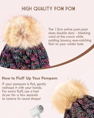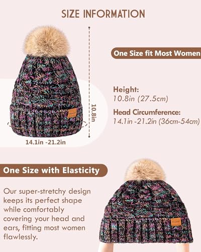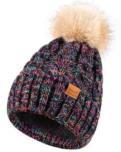 Elevate your winter style with the Winuesa Women’s Pom Pom Beanie, a perfect blend of fashion and warmth. This charming beanie features a playful pom pom top, a cozy fleece lining for superior insulation, and a beautifully thick cable knit design. Crafted to provide optimal warmth in cold weather, it’s an ideal accessory for skiing, snowboarding, or simply enjoying a brisk walk. Its fashionable multi-color design ensures you stand out while staying snug. A must-have for any lady’s winter wardrobe, offering both comfort and a chic look for daily wear or outdoor adventures.