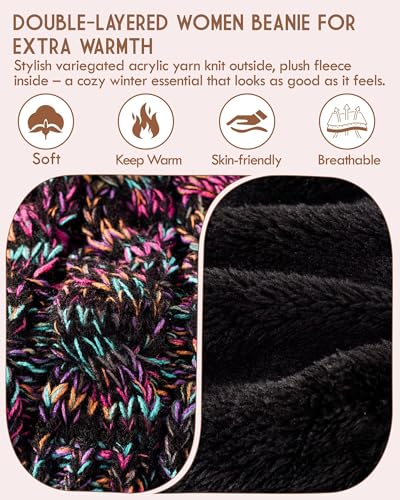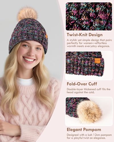 Women’s Pom Pom Beanie – Fleece Lined Cable Knit Hat