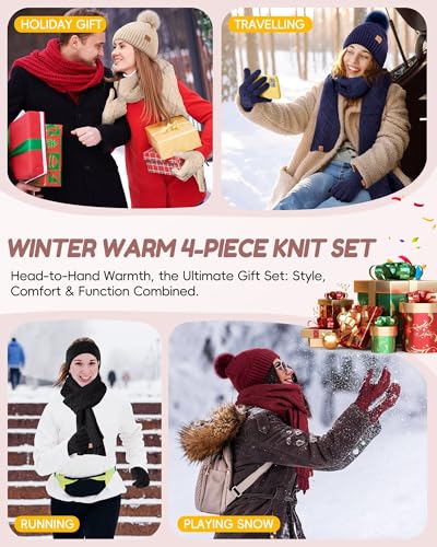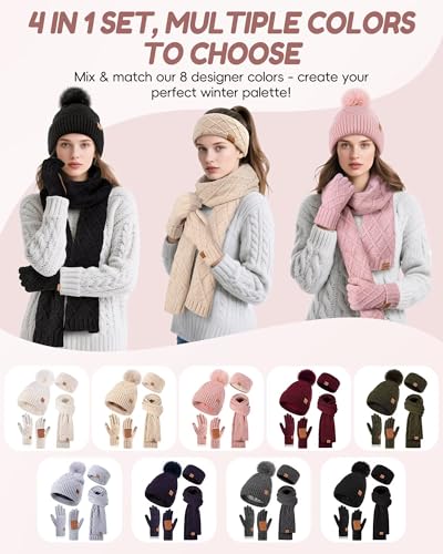Women’s Winter 4-in-1 Set: Beanie, Scarf, Gloves, Headband
