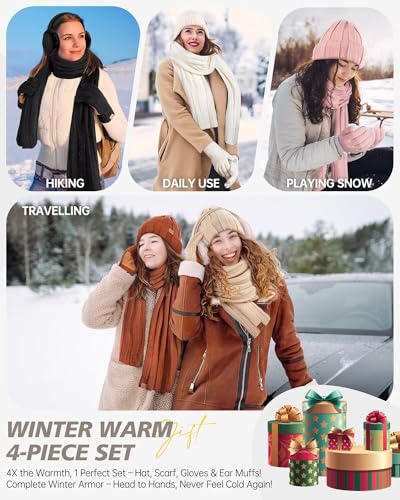 Women’s Winter 4-in-1 Warm Set: Hat, Gloves, Scarf, Earmuffs