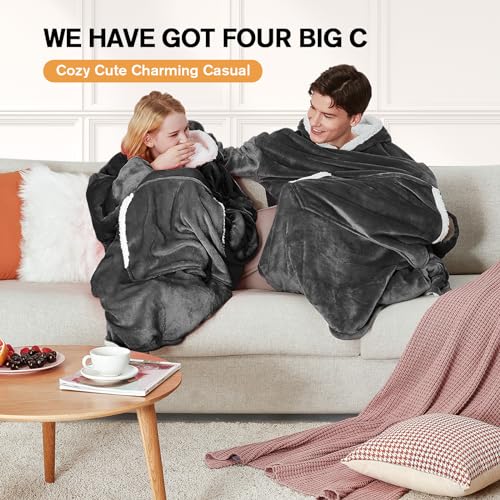 yescool Wearable Blanket Hoodie – Cozy Oversized Flannel Sherpa