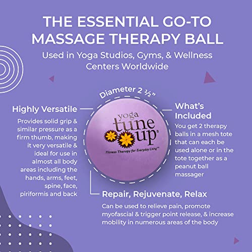 Experience deep pain relief with YOGA TUNE UP® Therapy Balls by Tune Up Fitness. These massage balls are expertly designed for trigger point, pressure point, and myofascial release, helping to alleviate muscle soreness and improve flexibility. Use them individually or as a peanut ball for targeted relief in various body areas. Comes with a convenient tote.