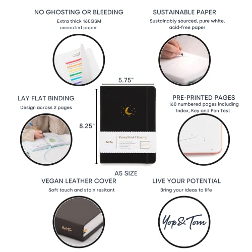 Yop & Tom A5 Bullet Journal – Moon & Stars 160 GSM Paper