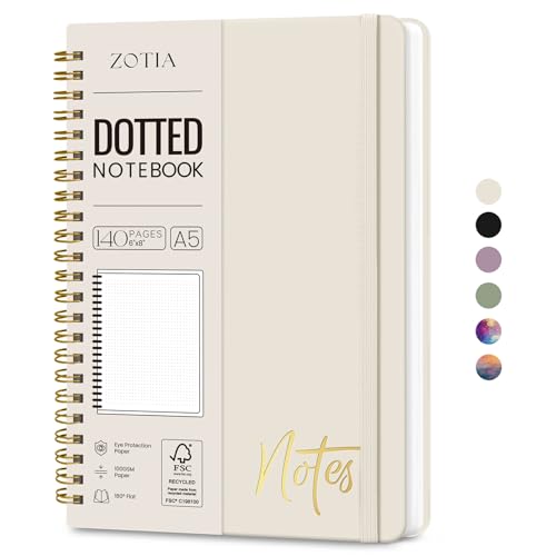 ZOTIA A5 spiral dotted journal for women. Hardcover notebook with 140 pages, ideal for writing, work, note-taking, and office supplies.