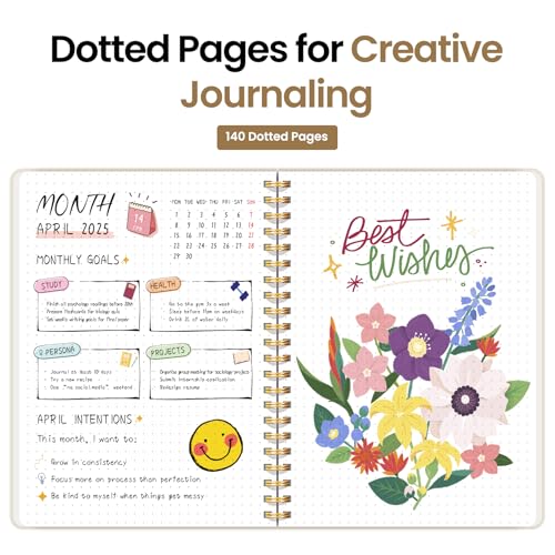 - Elegant A5 spiral dotted journal designed specifically for women.